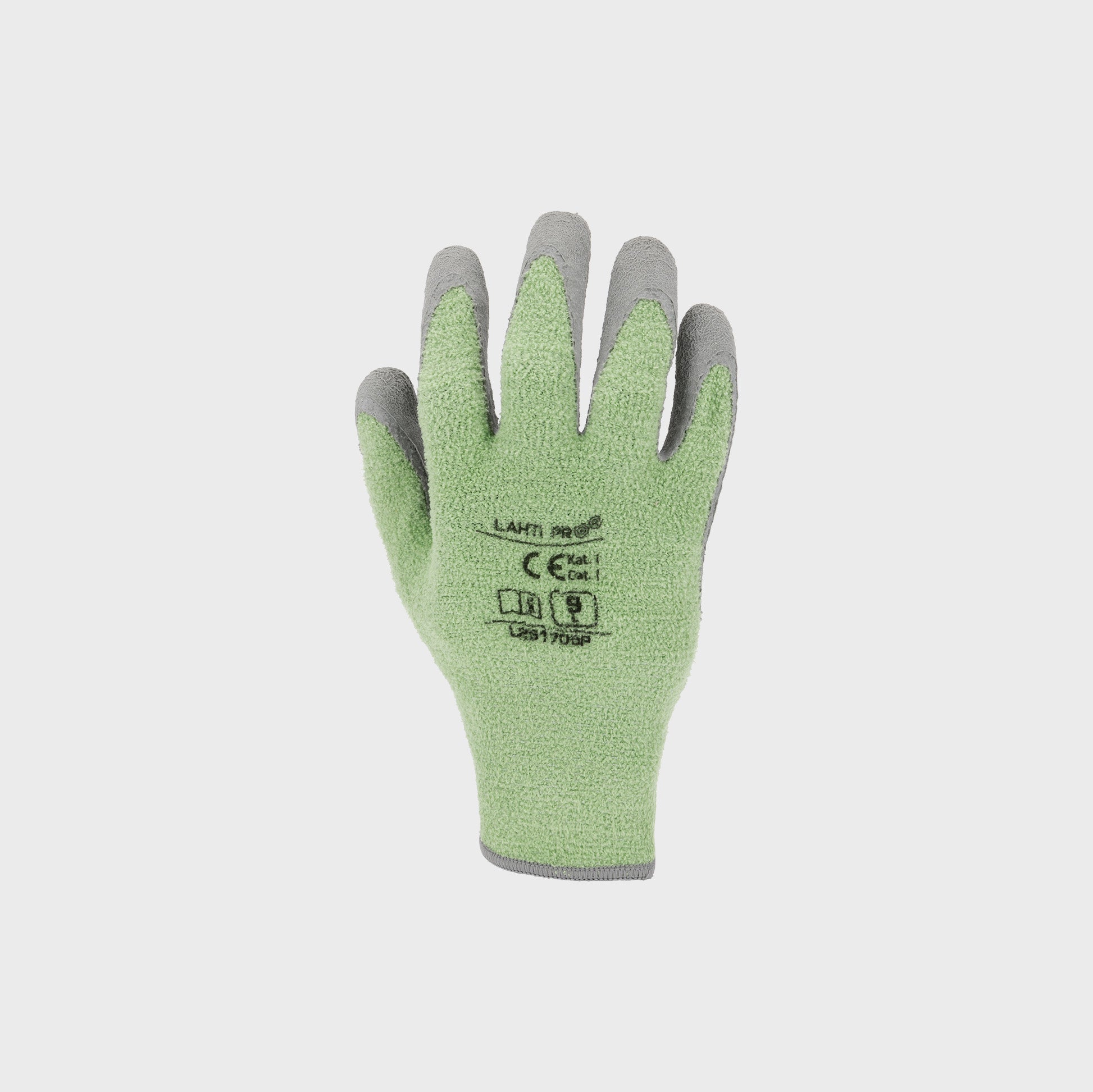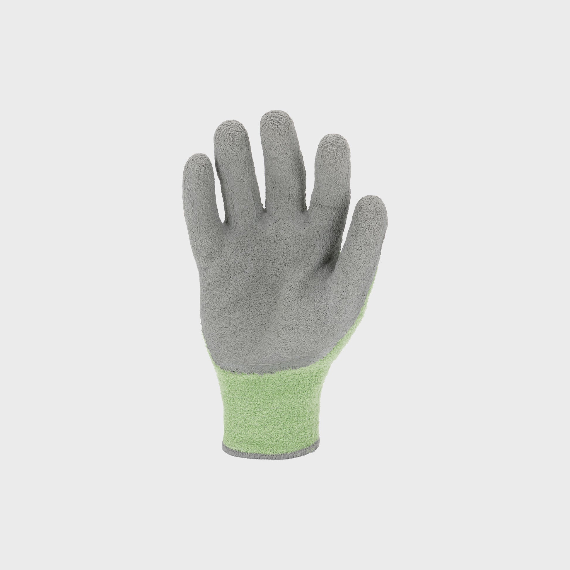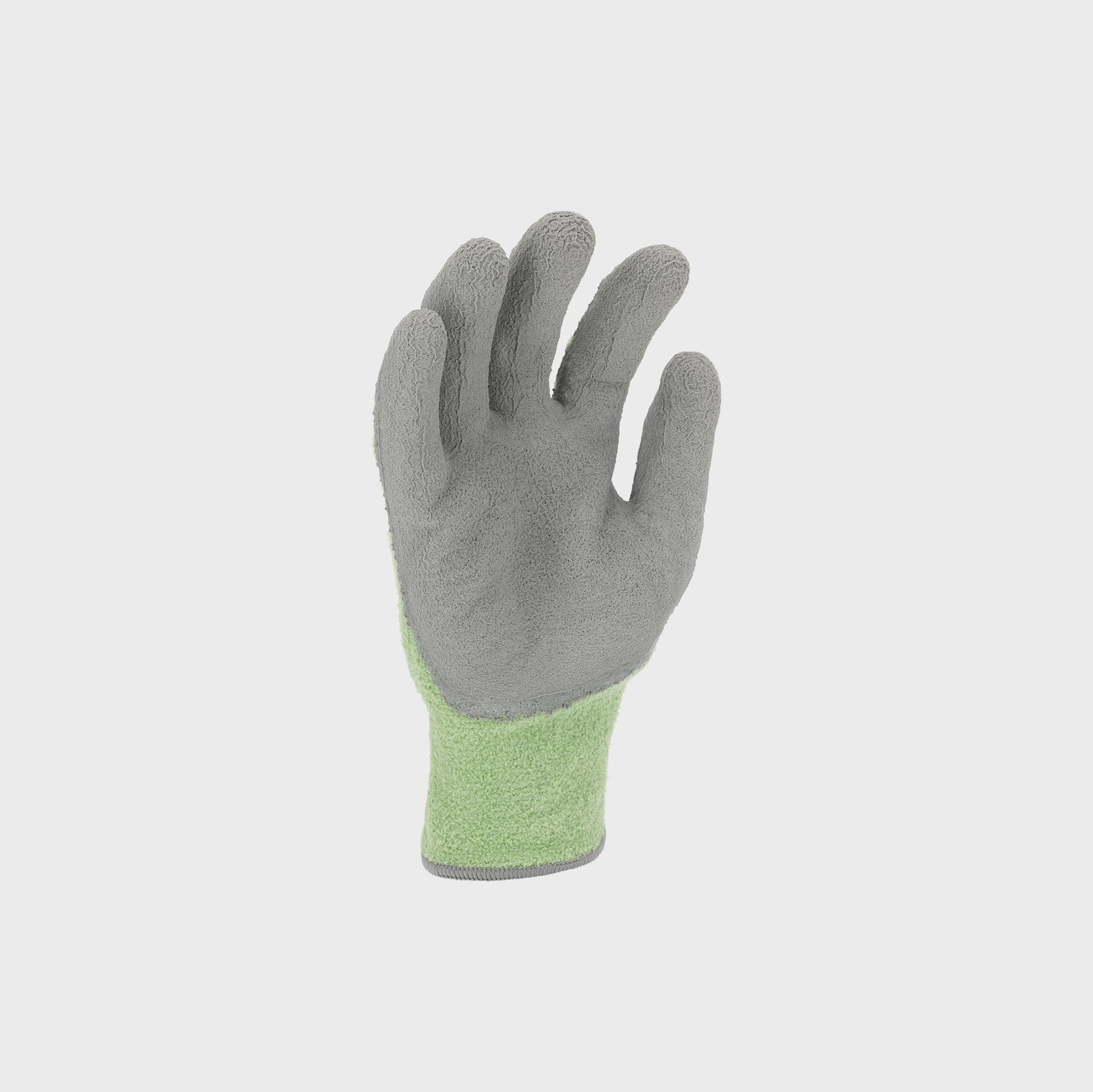 Rękawice wykonane z poliestru oraz lateksu. Rękawice powlekane lateksem o porowatej strukturze zwiększającym oddychalność, odporność na przetarcia i rozdarcia oraz podwyższającym przyczepność. Chronią użytkownika przed zimnem i podnoszą komfort pracy. Elastyczne i rozciągliwe idealnie dopasowują się do kształtu dłoni. Wykonane z bardzo miękkiego, oddychającego włókna poliestrowego strukturą przypominającego wełnę. Zakończone ściągaczem. Szeroki zakres zastosowań, prace magazynowe, budownictwo. Kolor zielono - szary. Rękawice sprzedawane na karcie po 1 parze. Posiadają deklarację CE oraz zgodne są z normą EN 420. Pierwsza kategoria środków ochrony indywidualnej.