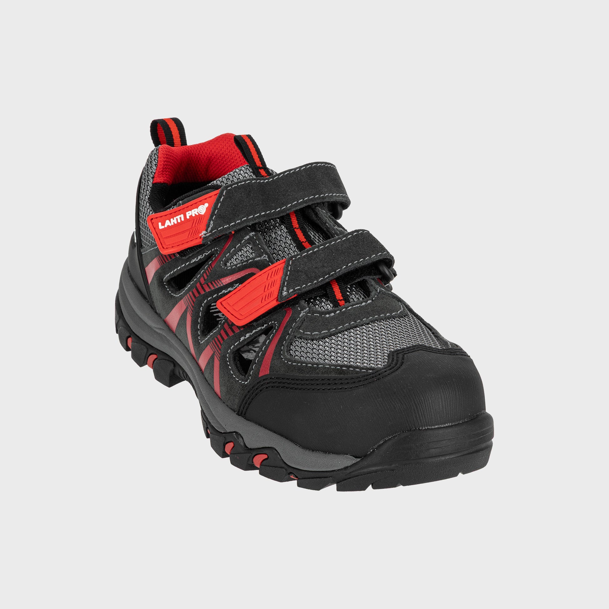 Sandały męskie z podnoskiem kompozytowym Lahti Pro L30603. Najnowsza kolekcja butów roboczych dla Panów. Wierz buta wykonany ze skóry zamszowej z dodatkiem dzianiny siatkowej dla lepszej wentylacji stopy. Gumowana podeszwa chroniąca przed poślizgiem na podłożu stalowym oraz ceramicznym oraz podnosek kompozytowy chroniący stopę przed uderzeniami. But spełnia właściwości antyelektrostatyczne.